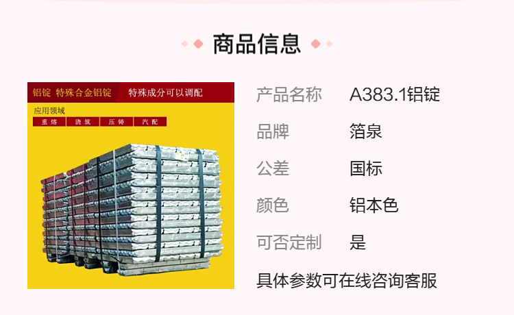 高硅铜系 A383.1铝锭 易压铸,适汽车发动机缸体领域